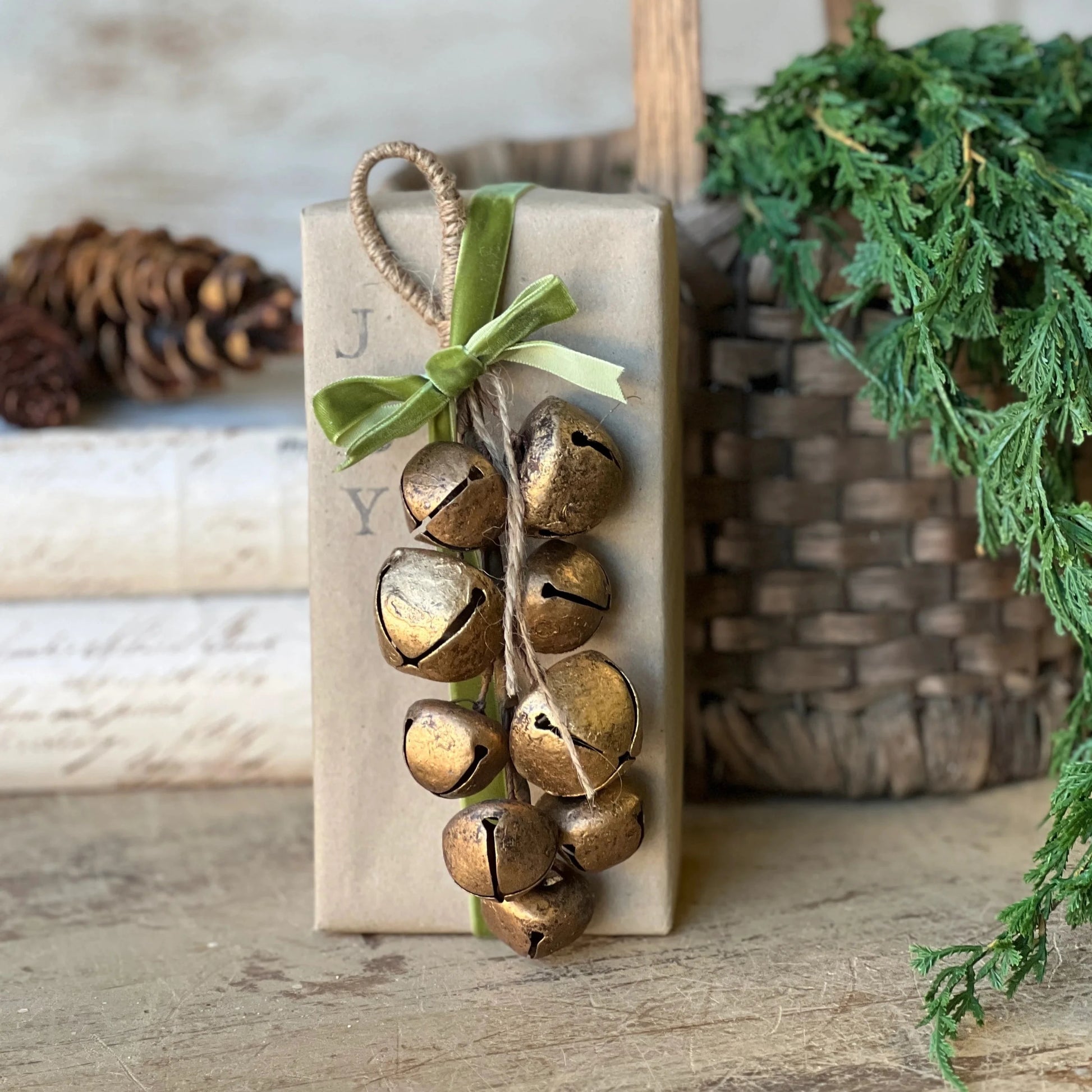 Perfectly distressed gold toned bells add a lovely note to your holiday decor.
