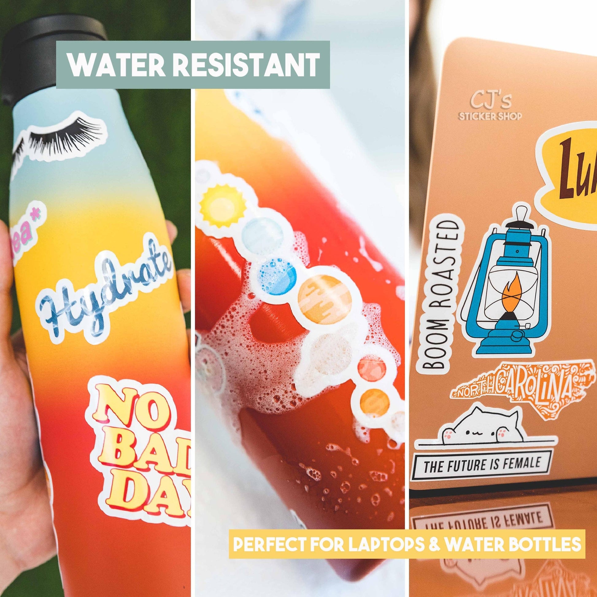- Durable & high-quality vinyl stickers. - Weather and water resistant. - Matte finish overlaminate protects from UV, fading and scratches. Stickers are a great way to personalize your car, laptop, tumbler, and pretty much anything else you can think of! They will stick to clean, smooth surfaces best.